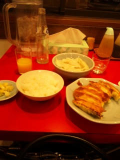 焼き餃子に水餃子とライス+オレンジジュース
